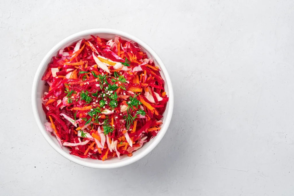 - Хрусткий Буряковий Слайс: Наповнений капустою, буряком, морквою та шпинатом, цей слайс дає вітаміни та смак. Ідеально підходить як топінг або гарнір. Рецепт від Julie’s Apron.
